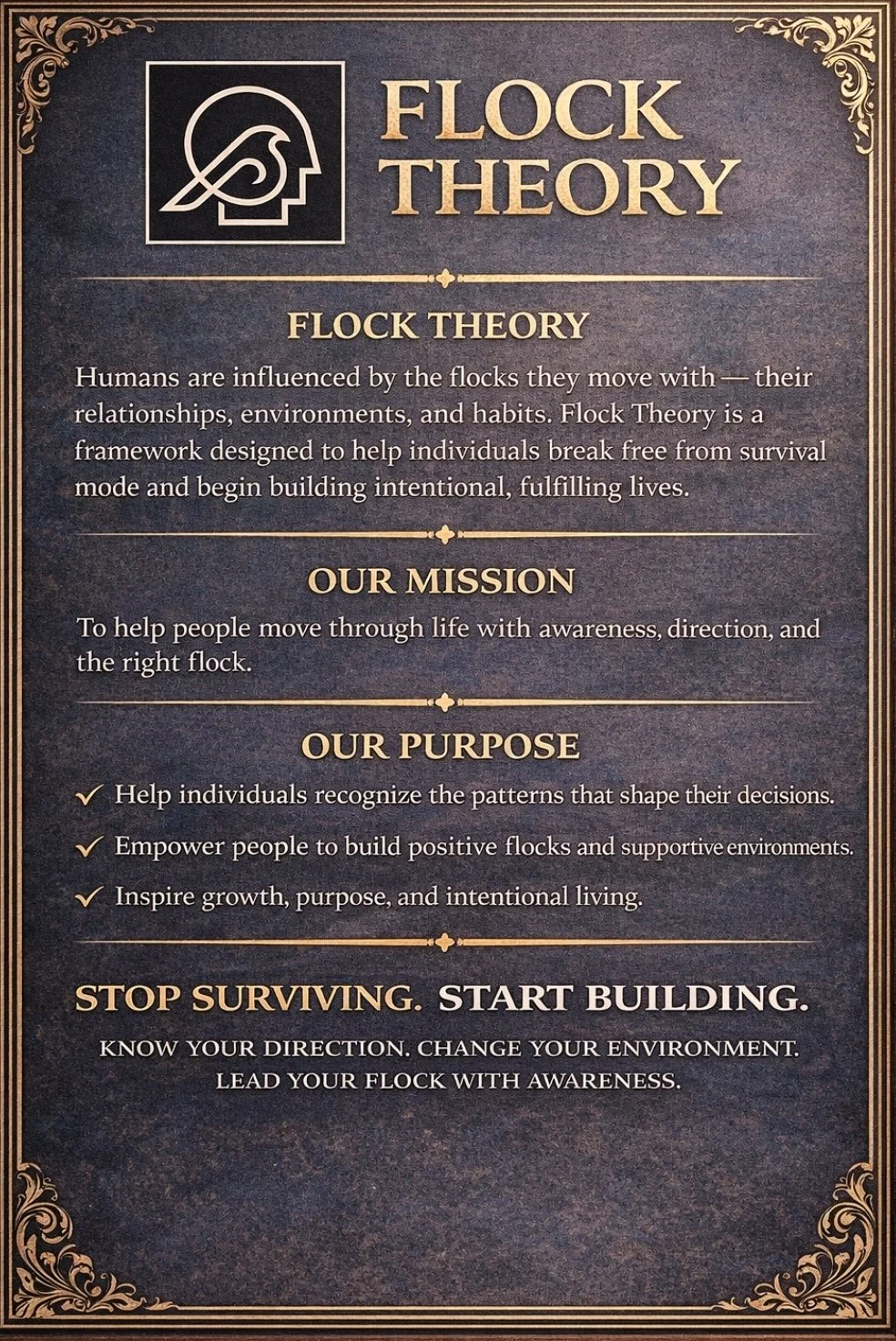 Flock Theory is a system that helps people think clearly, heal internally, find purpose, move forward, then lead and own their own lives.